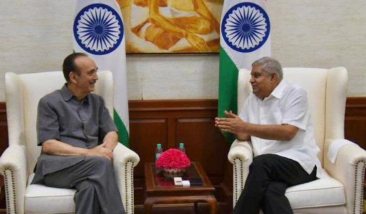 “Former Union Minister and former Chief Minister of Jammu and Kashmir, Shri Ghulam Nabi Azad called on the Hon’ble Vice President, Shri Jagdeep Dhankhar at Upa-Rashtrapati Nivas today,” the Vice President Secretariat tweeted. (Agencies)