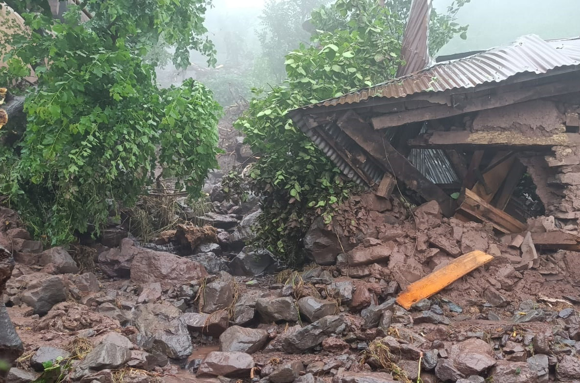 J&K | Two children killed, as a mud house collapsed due to landslides in Samole village in Muttal area of Udhampur district. Rescue teams after getting info rushed to the spot & recovered the dead bodies from the debris of the collapsed house: Udhampur Administration