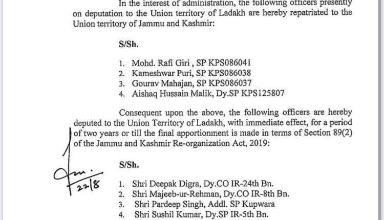 Four Police officers deputed to Ladakh; Four repatriated to J&K. J&K / Ladakh By Editor Last updated Aug 22, 2022 265 Share 265 Share