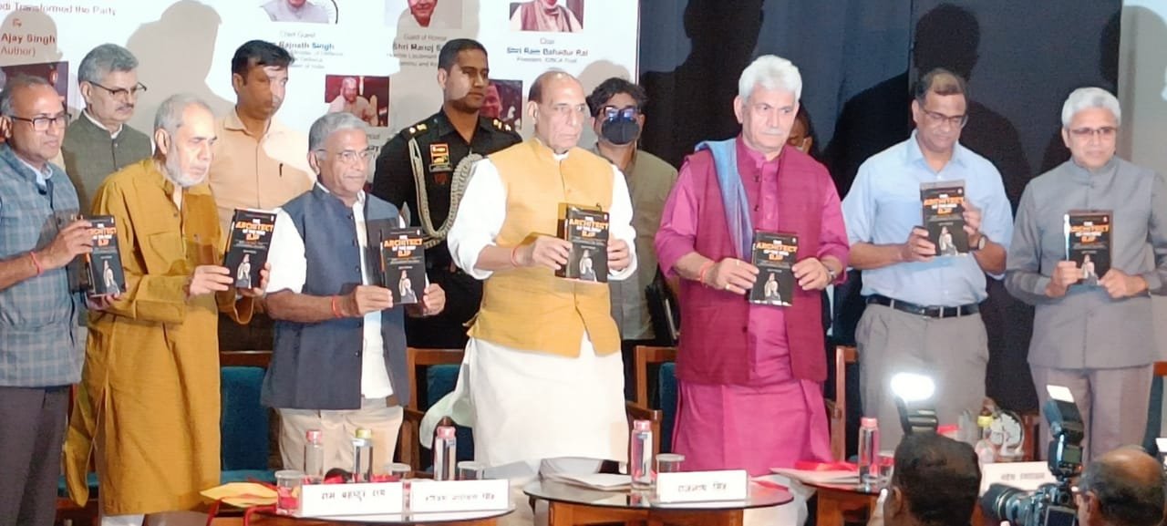 Union Defence Minister Rajnath Singh, Lieutenant Governor of #JammuAndKashmir, Manoj Sinha and Rajya Sabha Deputy Chairman launches the Book titled ‘The Architect of the New BJP.