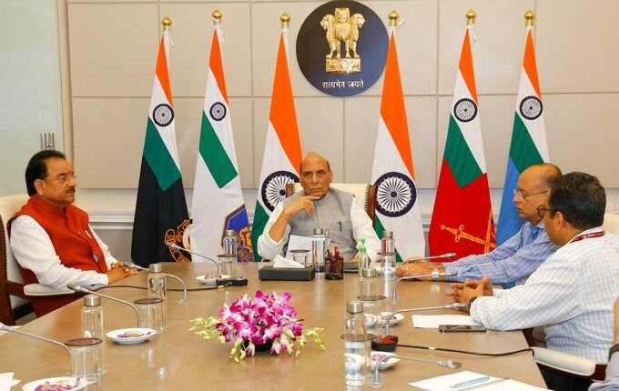 Defence Min Rajnath Singh today reviewed the preparations for the forthcoming DefExpo 2022 at a meeting in New Delhi.During the meeting, the Raksha Mantri was briefed by officials about the extensive arrangements being made by multiple stakeholders for the event: MoD