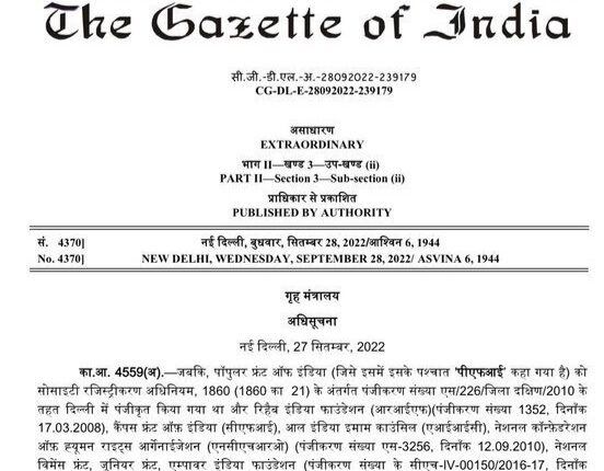Central Government declares PFI (Popular Front of India) and its associates or affiliates or fronts as an unlawful association with immediate effect, for a period of five years. Nation By Editor Last updated Sep 28, 2022 194 Share 194 Share