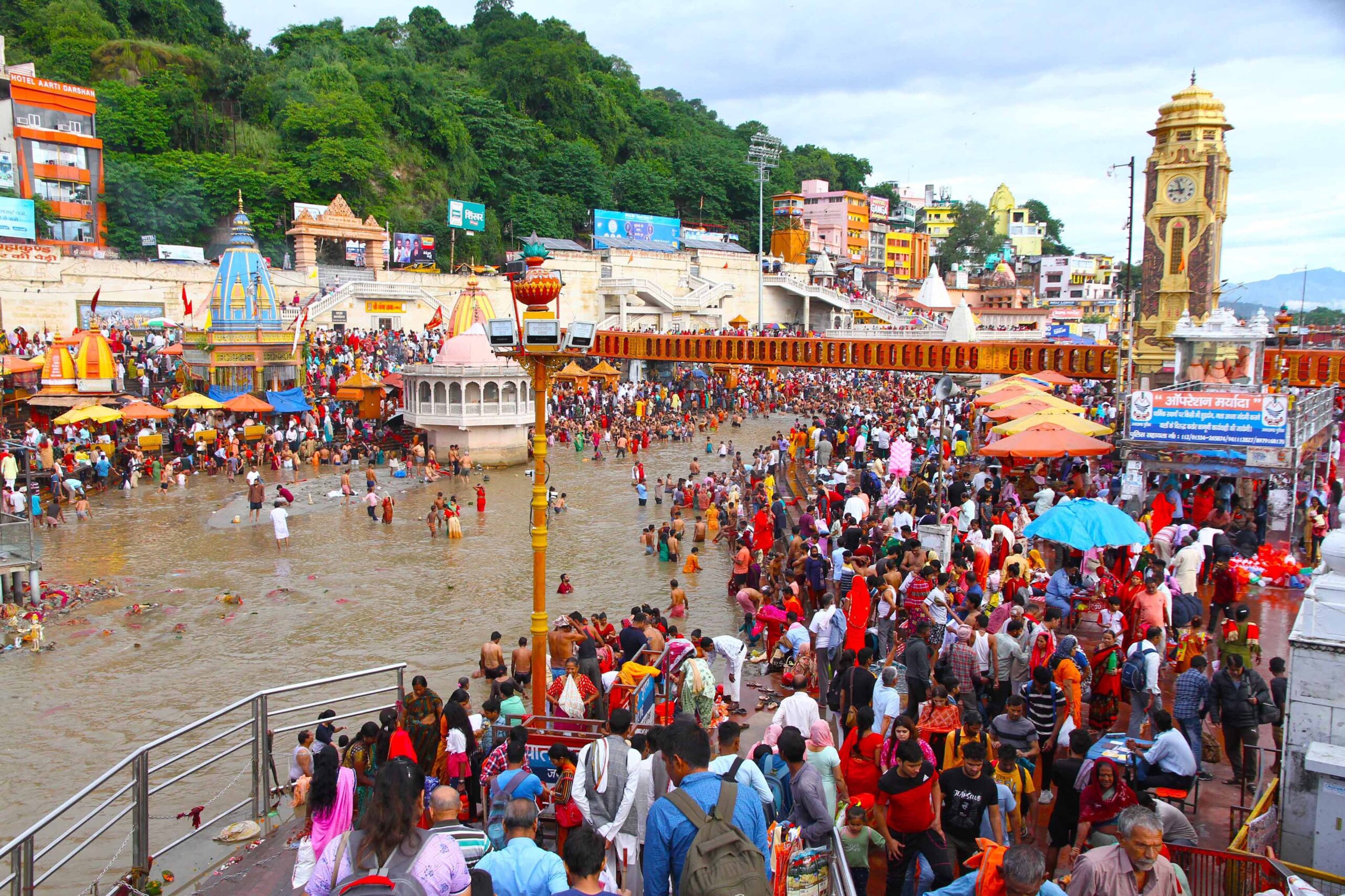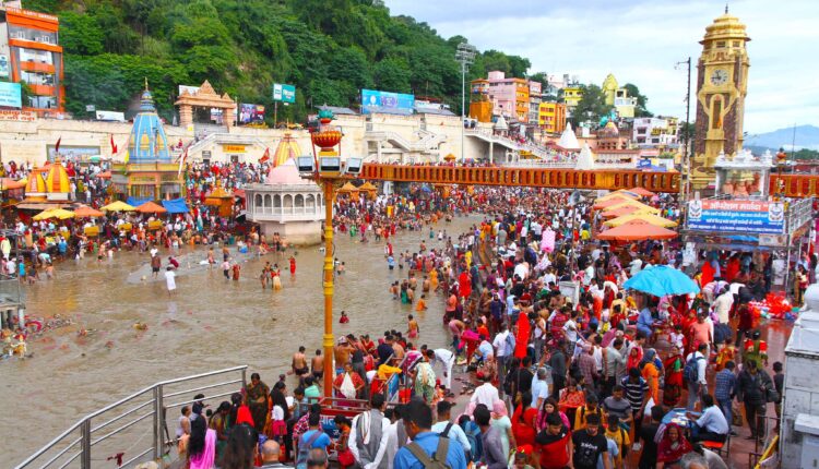 Utrakhand | Devotees taking a dip in the holy river Ganga on the occasion of ‘Sharad Purnima’ at Har Ki Pauri in Haridwar.