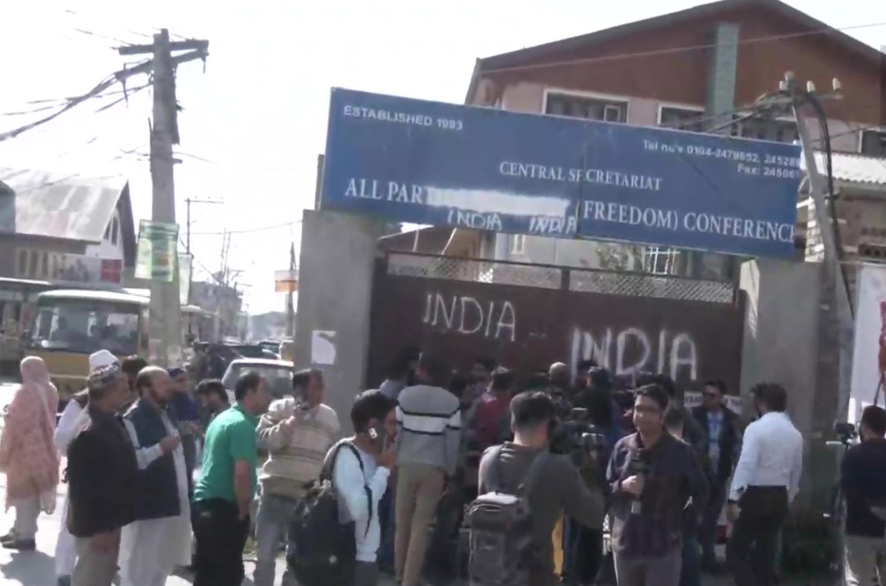 Jammu & Kashmir | Protestors express their anger by defacing the All Parties Hurriyat office hoarding in Srinagar, against the killing of Puran Krishan Bhat, a Kashmiri Pandit killed by terrorists in Shopian on October 15th.