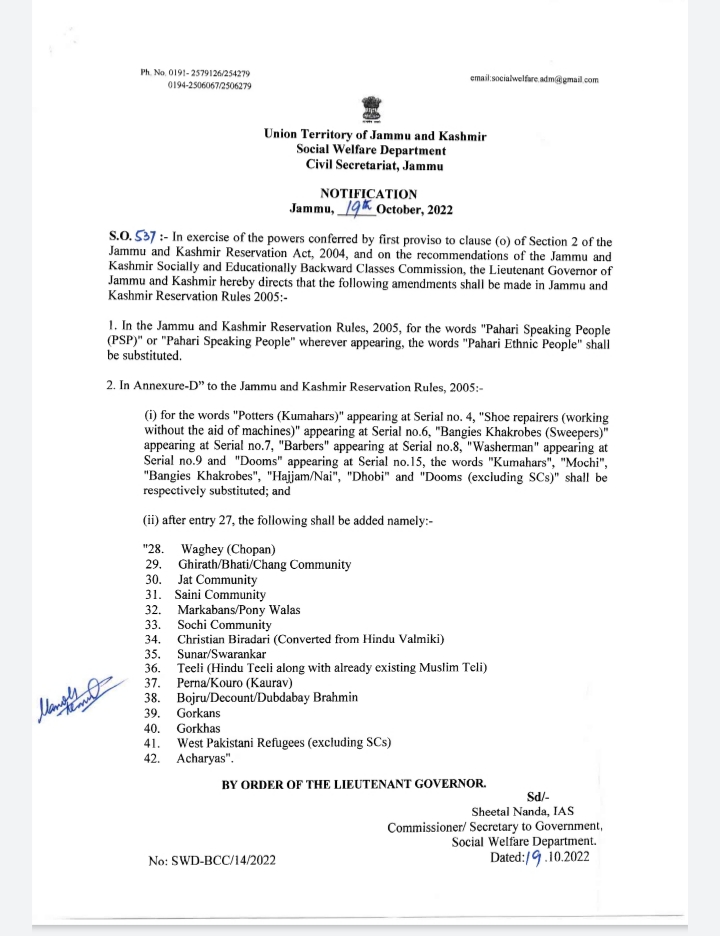 J&K | In a significant move, the Jammu and Kashmir Government has expanded the social caste list by including 15 new classes to it. J&K / Ladakh By Editor Last updated Oct 22, 2022 429 Share 429 Share