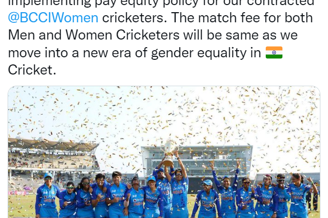 BCCI announces the implementation of pay equity policy for contracted Indian women cricketers. The match fee for both Men and Women Cricketers will be the same. Nation By Editor Last updated Oct 27, 2022 165 Share 165 Share