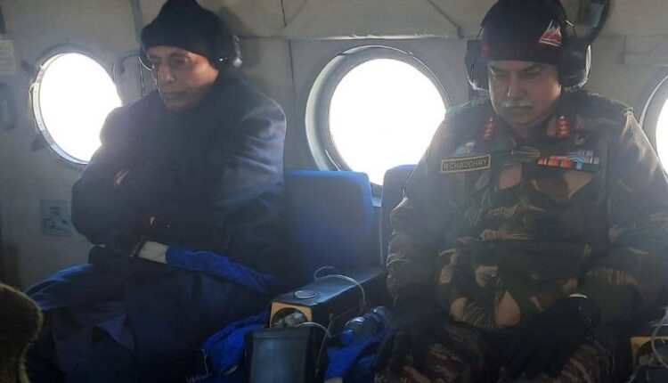 Leh, Ladakh | Defence Minister Rajnath Singh departs for Shyok Setu. DG BRO (Border Roads Organisation) Lt Gen Rajeev Chaudhary also with him.