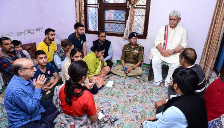 J&K | Lt Guv Manoj Sinha met the family members of martyr Shri Puran Krishan Bhat Ji at their residence in Jammu and offered my condolences. Administration to provide a permanent Govt job to his wife and every possible help to the family. J&K / Ladakh By Editor Last updated Nov 4, 2022 255 Share 255 Share