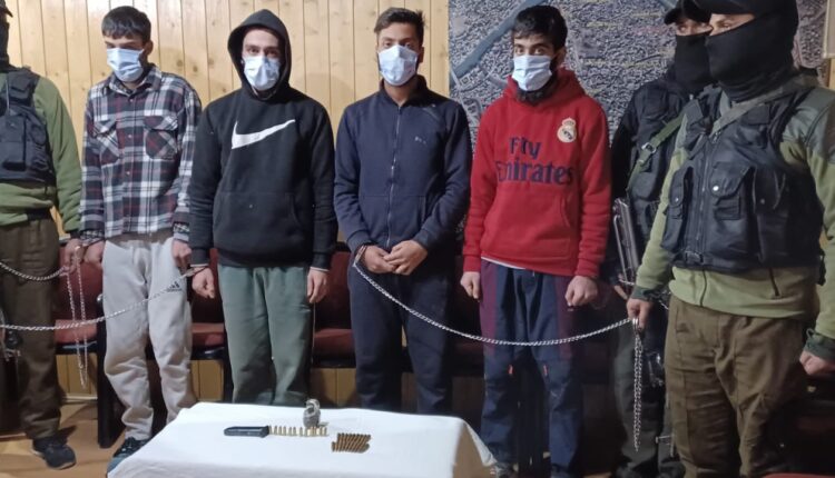 J&K | Four terror associates of TRF arrested by Srinagar Police. These terror associates were involved in grenade attacks in Srinagar & used to provide logistical support to active terrorists of TRF. Explosives and ammunition recovered. Case registered under relevant sections of UAPA.