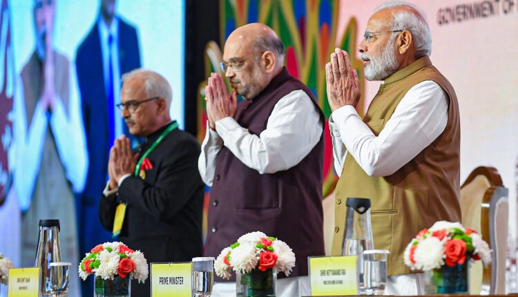 Prime Minister Narendra Modi with Union Home Minister Amit Shah during the third ‘No Money for Terror’ Ministerial Conference on Counter-Terrorism Financing, in New Delhi.
