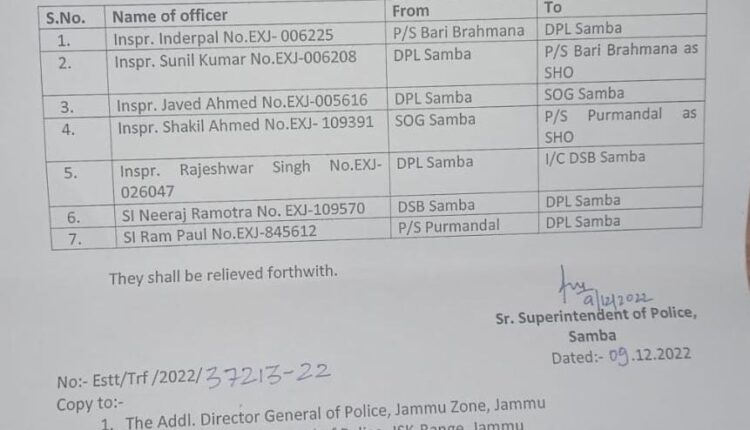 J&K Police orders transfers and postings of Police Officers. J&K / Ladakh By Editor Last updated Dec 9, 2022 685 Share 685 Share