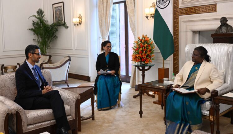 CEO of Google and Alphabet Sundar Pichai called on President Droupadi Murmu at Rashtrapati Bhavan. The President described Shri Pichai, a recipient of Padma Bhushan, as a symbol of Indian talent and wisdom and urged him to work for universal digital literacy in India.