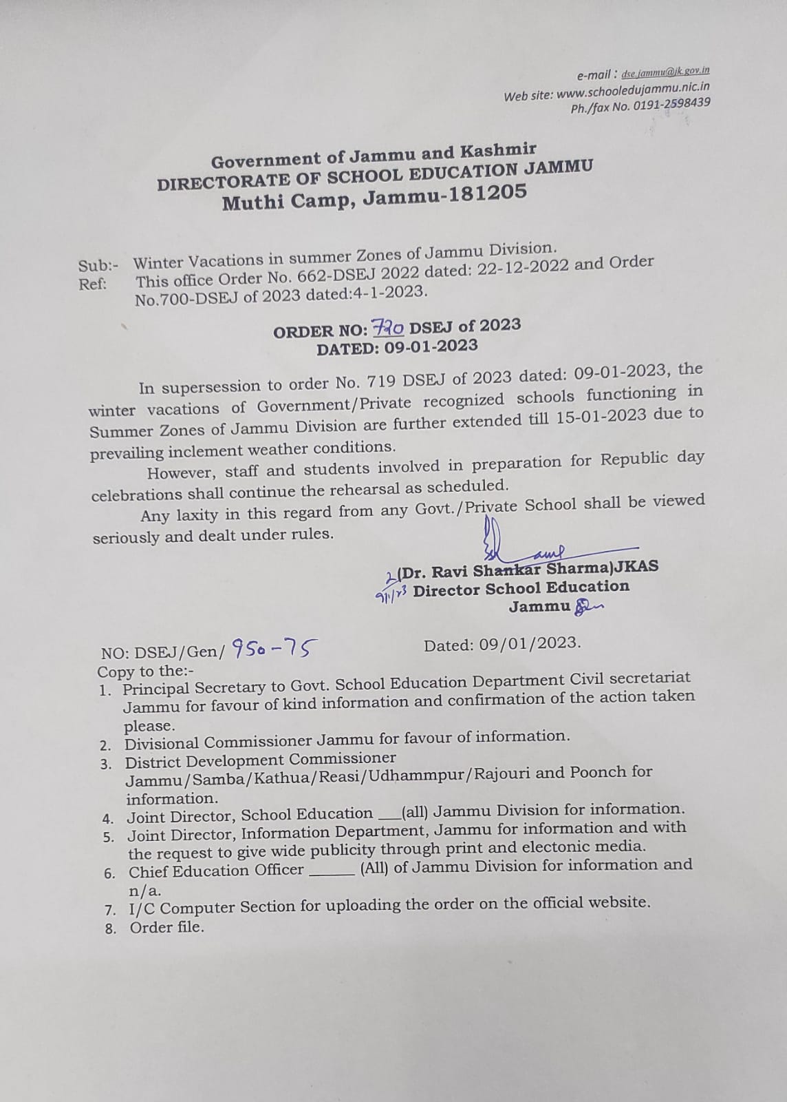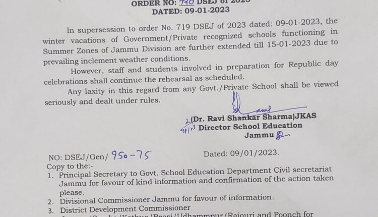 • Jammu and Kashmir | Director School Education Jammu extends winter vacations upto to 15th of January 2023