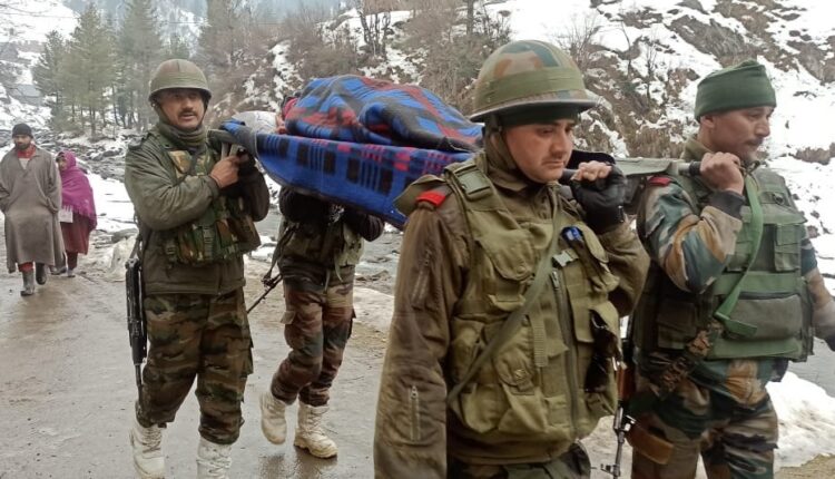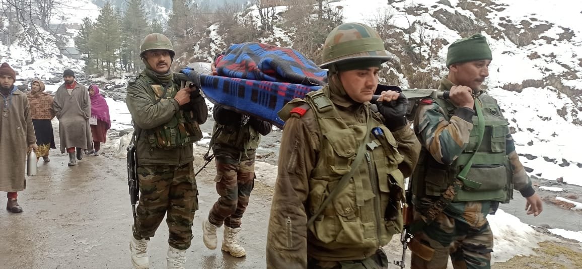 J&K | As harsh winter approaches the remote villages near LoC, Indian Army’s Chinar Corps warriors conducted an emergency evacuation of a pregnant lady Meema Begum from Chotwali village, Boniyar Tehsil to the Primary Health Care (PHC) Centre in Boniyar: Indian Army