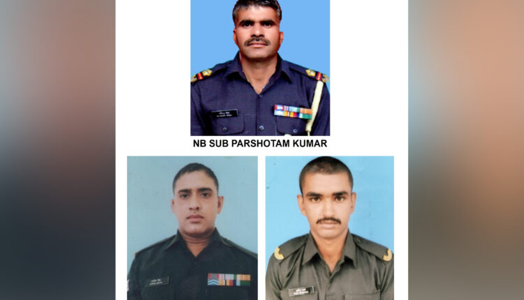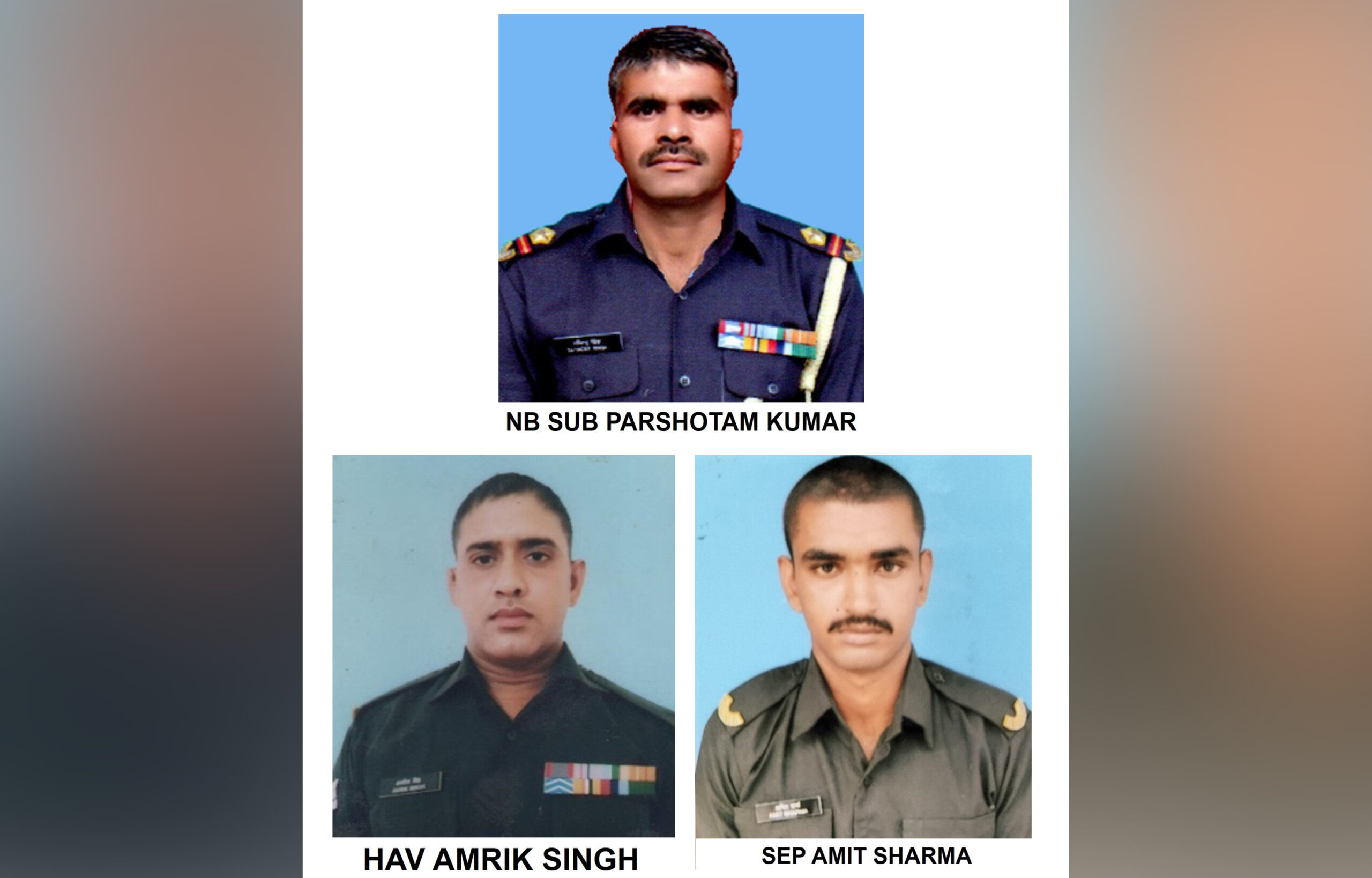 Jammu and Kashmir | Naib Subedar Parshotam Kumar, Havildar Amrik Singh and Sepoy Amit Sharma lost their lives after they slipped into a deep gorge in Machhal Sector of Kupwara.