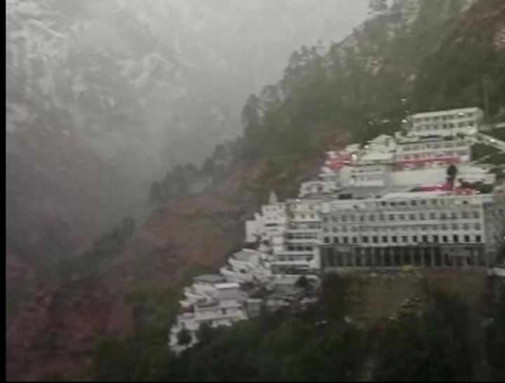 KATRA, JANUARY 13: The Mata Vaishno Devi shrine in Trikuta Hills near Katra town in Jammu and Kashmir’s Reasi district fresh snowfall on the eve of Lohri.