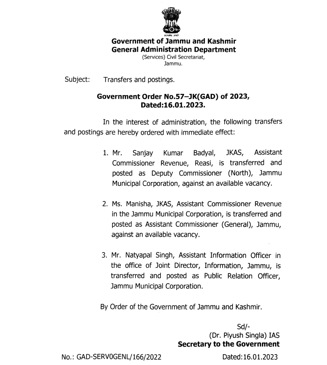 Jammu And Kashmir Government Orders Transfers And Postings Of JKAS Officers Uncategorized By Editor Last updated Jan 16, 2023 408 Share 408 Share