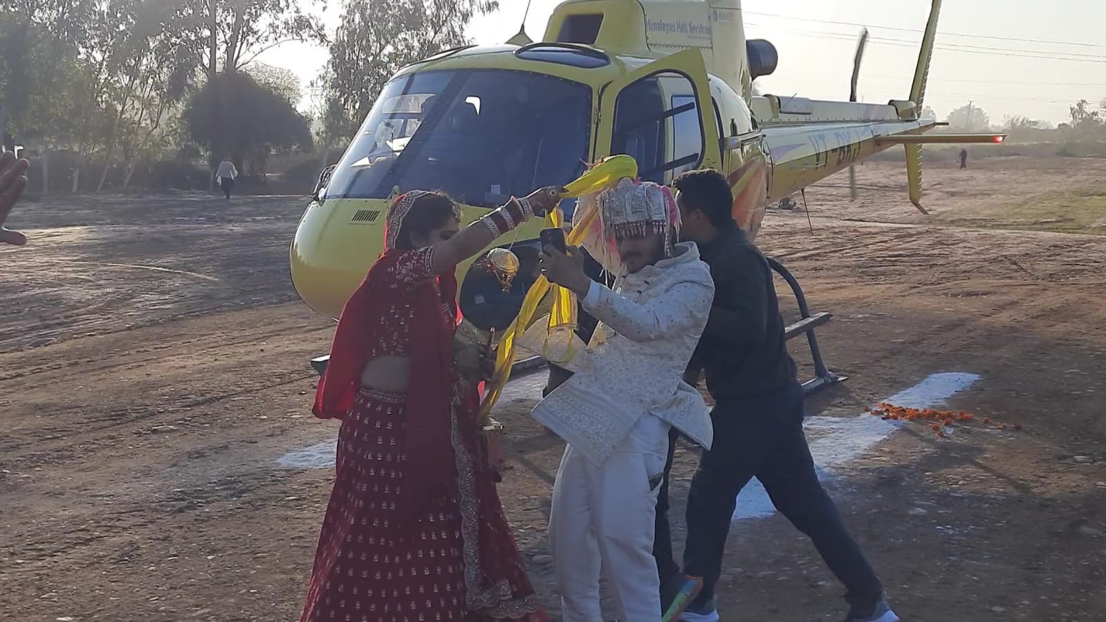 Kathua | Groom Brings Bride On Chopper J&K / Ladakh By Editor Last updated Feb 23, 2023 475 Share Paras Mehta, Resident Of Village Flote, Block Barnoti, District Kathua Booked A Chopper For ₹ 6 Lakh To Bring His Wife From Dinanagar, Punjab, Where He Got Married. 475 Share