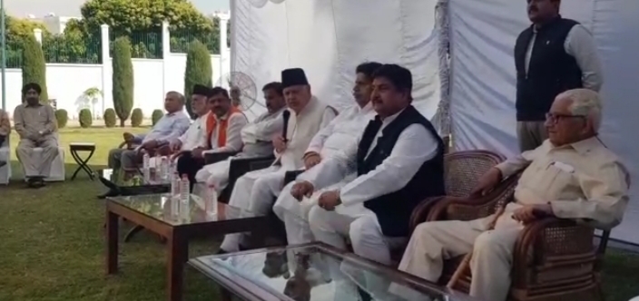 J&K | Meeting of Opposition party leaders chaired by NC President Farooq sdullah at his Jammu residence today.