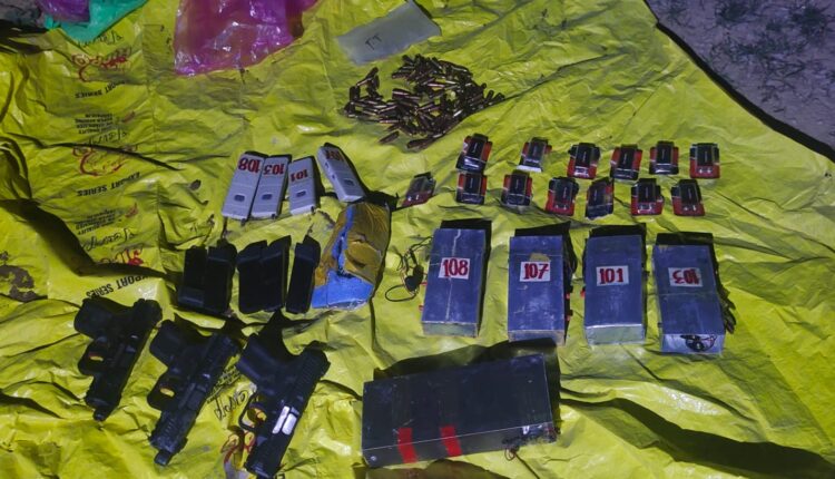 The recovery includes Improvised Explosive Devices (IEDs) 5, PTD’s programmed timer devices and RCIEDs, Detonators 6, Pistols 3, Pistol Magazines 5, Ammunition 9 mm rounds 124, Remote controls 4 and Batteries 13.
