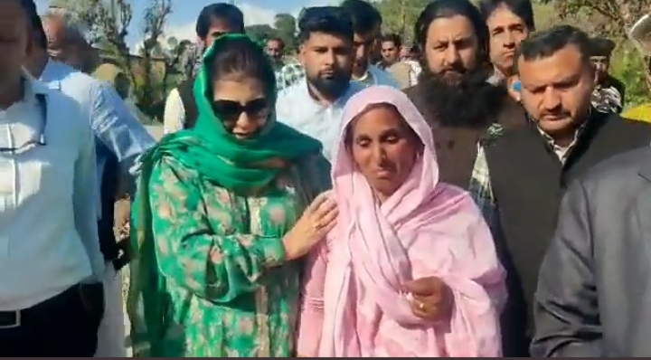 RAJOURI, MARCH 13: PDP president and former chief minister Mehbooba Mufti on Tuesday visited Dangri village near here to meet the families of those killed by militants in twin attacks on January 1-2.