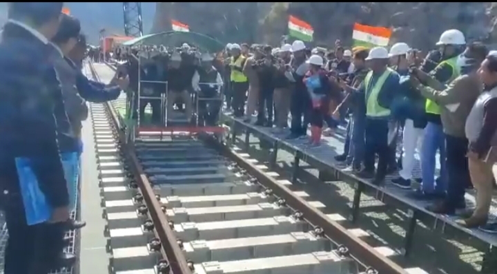 Jammu and Kashmir | Railway Minister Ashwani Vaishnaw Inspects World’s Highest Railway Bridge Over River Chenab in Reasi district.
