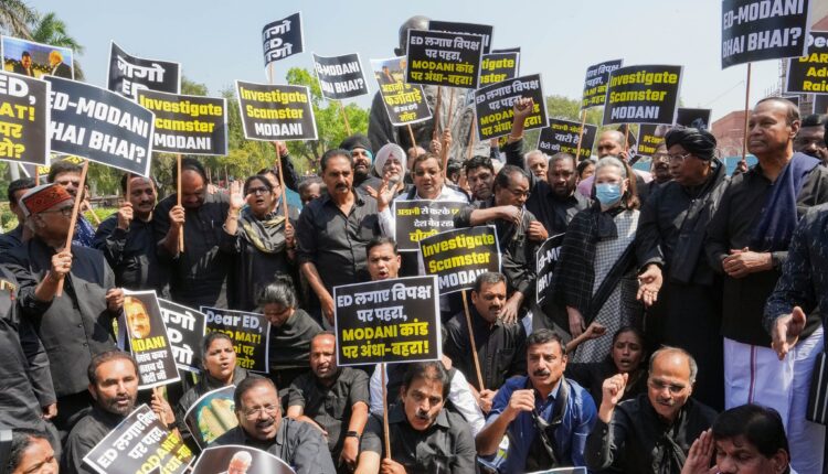 Wearing black clothes, several opposition MPs on Monday took out a march from parliament to Vijay Chowk to protest against the government over the Adani issue and Rahul Gandhi’s disqualification from the Lok Sabha. Nation By Editor Last updated Mar 27, 2023 313 Share 313 Share