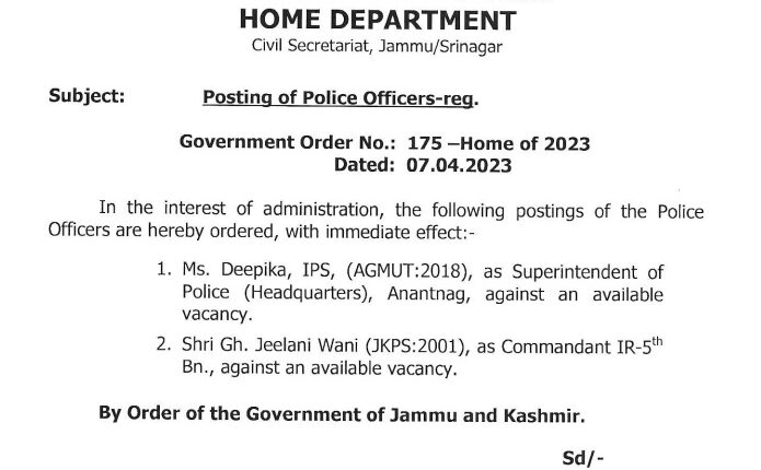 Jammu and Kashmir | Posting of Police Officers J&K / Ladakh By Editor Last updated Apr 7, 2023 565 Share 565 Share