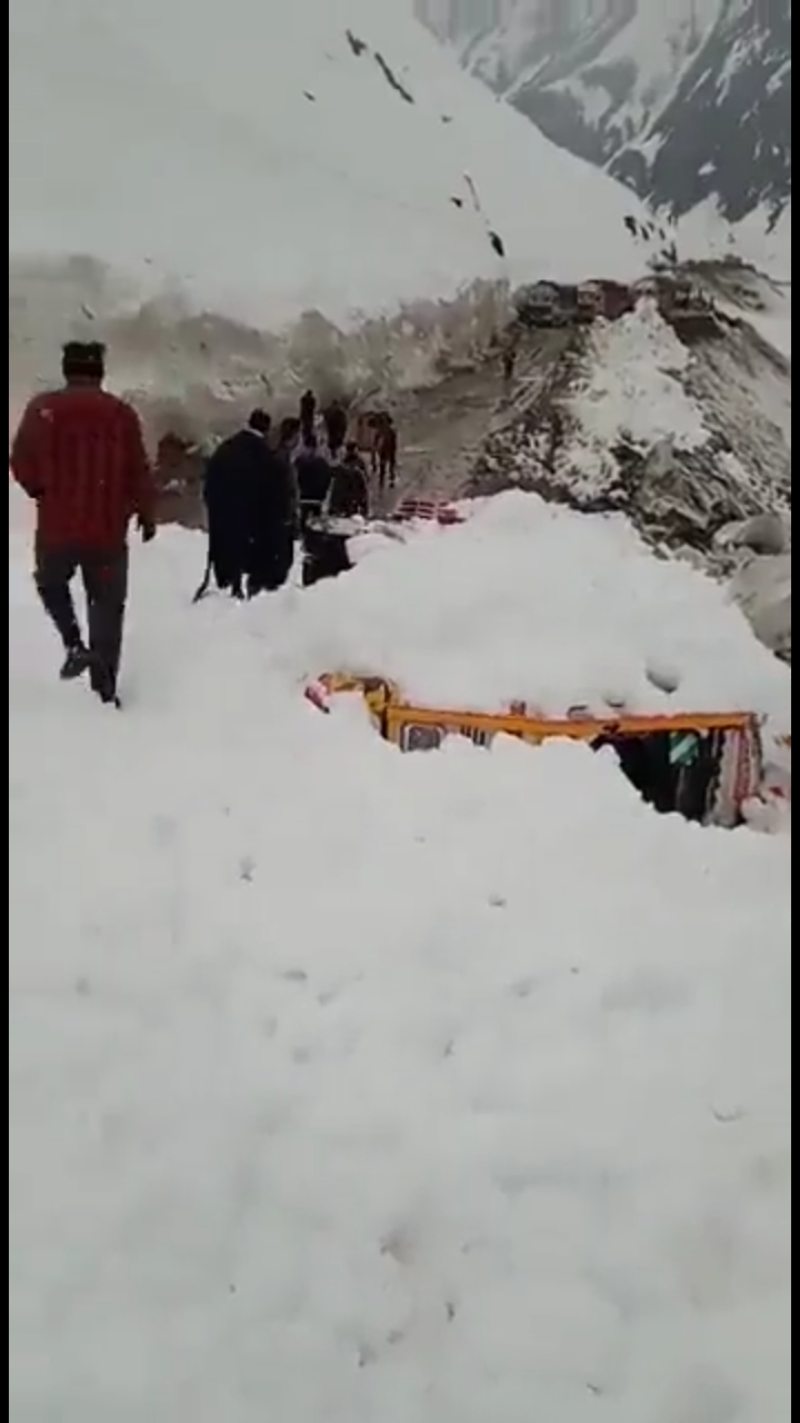SRINAGAR, Apr 16: Many loaded vehicles buried under Snow avalanche at Shaitani Nallah near Zojila pass from Minamarg Side of Kargil district on Sunday afternoon, Officials sources said here.