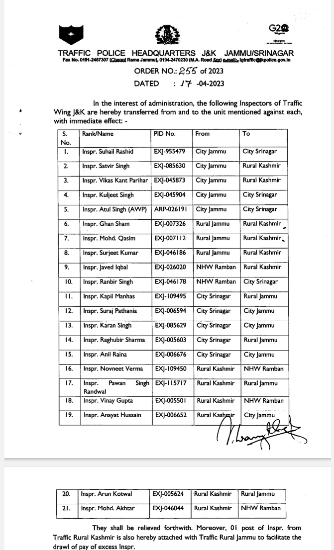 Jammu and Kashmir | Transfer and Posting in Police department. J&K / Ladakh By Editor Last updated Apr 19, 2023 827 Share 827 Share