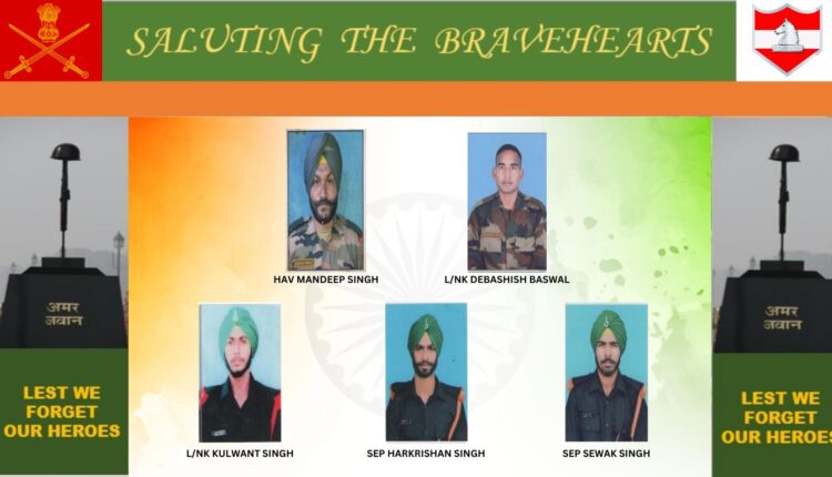 J&K | @Whiteknight_IA salutes the sacrifice of Hav Mandeep Singh, L/Nk Debashish Baswal, L/Nk Kulwant Singh, Sep Harkrishan Singh, Sep Sewak Singh, who laid down their lives in the line of duty in Poonch Sector on 20 Apr 23. We stand in solidarity with the bereaved families.