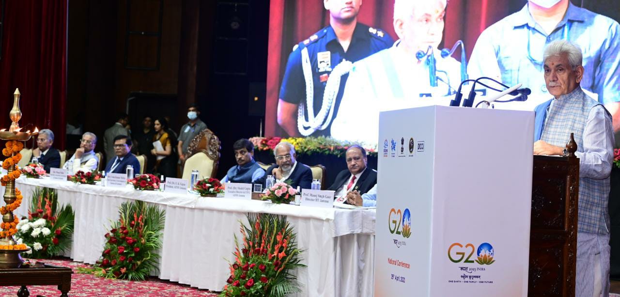 J&K | Lt Guv Manoj Sinha addressed National Conference on India@G20 organised by IIM Jammu, IIT Jammu & AIIMS Jammu in collaboration with Dalit Indian Chamber of Commerce & Industry on Priorities, Prospects and Way Forward for Creating Inclusive & Sustainable Society.