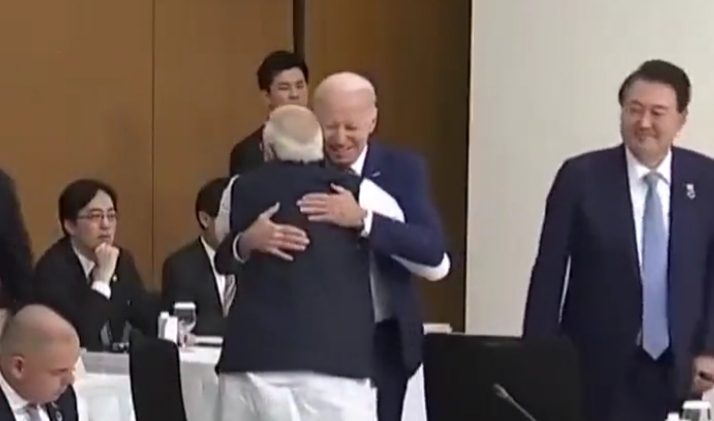 • Prime Minister Narendra Modi and US President Joe Biden share a hug as they meet in Hiroshima, Japan.