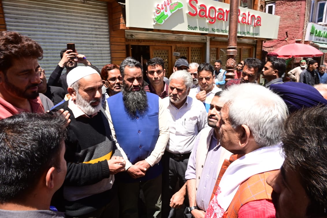 Jammu and Kashmir | LG Manoj Sinha interacted with residents, tourists and shopkeepers at the main market of Pahalgam. Glad to attend to their queries, issues and demands. Assured time bound redressal of all genuine grievances. Inspected & took stock of the Pahalgam-Chandanwari road.
