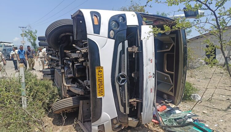 According to police, the victims after having darshan at the Vaishno Devi shrine in Trikuta Hills had returned to Katra town, from where they had boarded a bus No. RJ14PD-4101 for Jammu. However, on a sharp turn near Moori police check post, the bus turned turtle, they added.