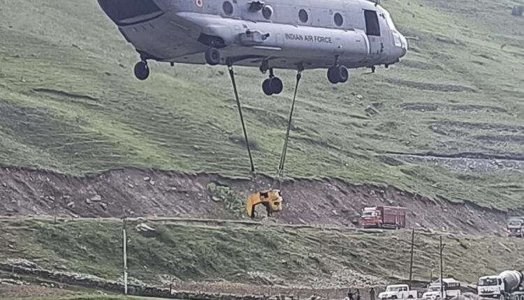 Jammu and Kashmir | Amarnath Yatra 2023: Border Roads Organisation Project Beacon tasked to maintain tracks leading to Holy Amarnath Cave Shrine in J&K shifted equipment using Indian Air Force Chinook helicopters from Sonamarg to Panchtarni to expedite the allocated task: BRO