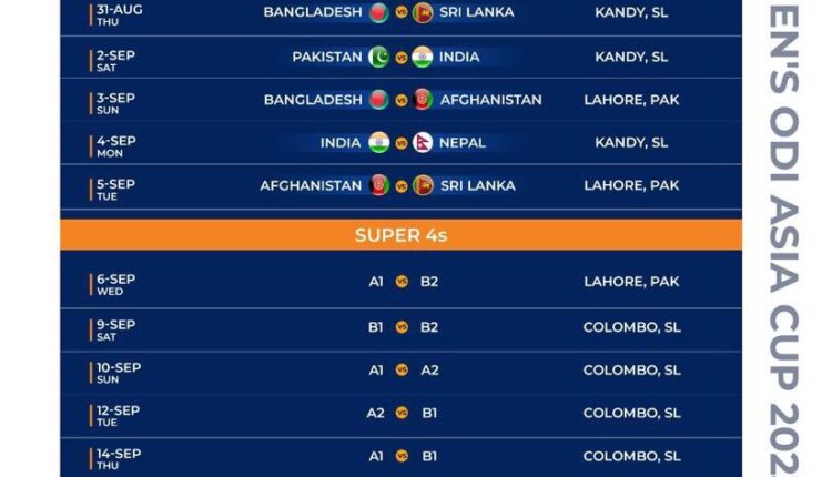 Schedule for the Men’s ODI Asia Cup 2023 announced. India to take on Pakistan on 2nd September at Kandy in Sri Lanka. J&K / Ladakh By Editor Last updated Jul 19, 2023 182 Share In the inaugural match on 30th August, Pakistan and Nepal face each other in Multan. 182 Share