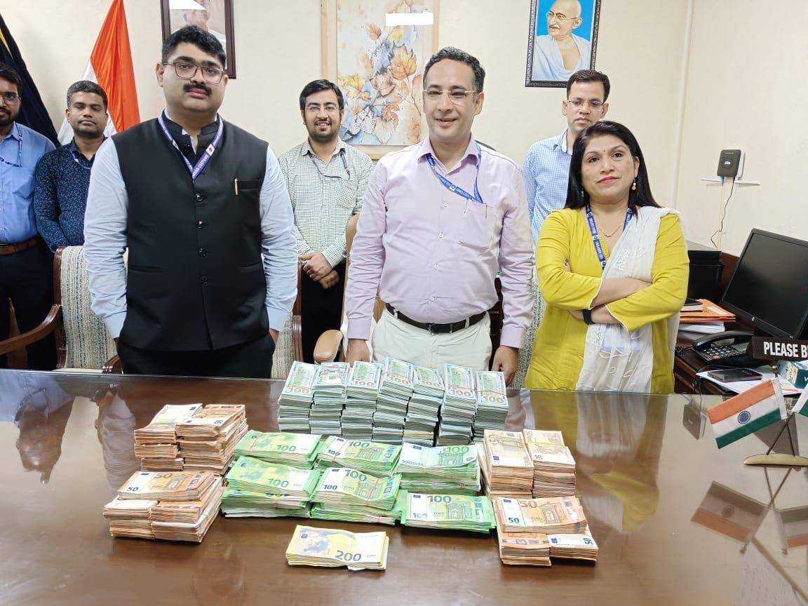Officers of Airport Customs, IGI Airport, Terminal-3, Delhi have booked a case of smuggling of foreign currency yesterday against three Tajikistan National Passengers. The detailed examination of the baggage and personal search of the pax(es) resulted in recovery of foreign currency (USD 7,20,000 & Euro 4,66,200 from them which is equivalent to Rs 10.06 crores. The recovered foreign currency has been seized under section 110 of Customs Act, 1962. Further investigation is under progress: Customs