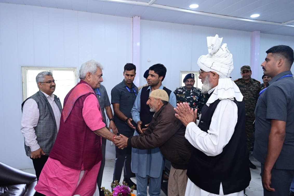 Jammu and Kashmir | During a visit to Baltal Base Camp, interacted with Pilgrims, Service Providers and Officials to review arrangements related to ongoing Shri Amarnath Ji Yatra. The sacred journey is bringing happiness in people’s lives and giving new wings to local aspirations: Lt Guv Manoj Sinha