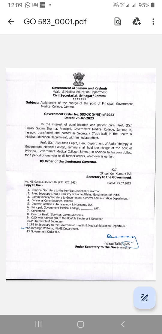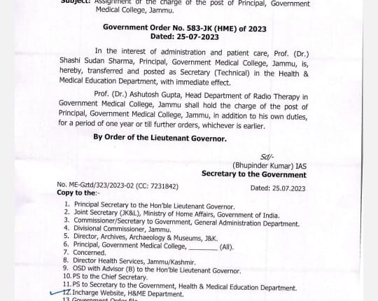 Jammu and Kashmir | Dr Ashutosh Gupta appointed as new principal GMC Jammu