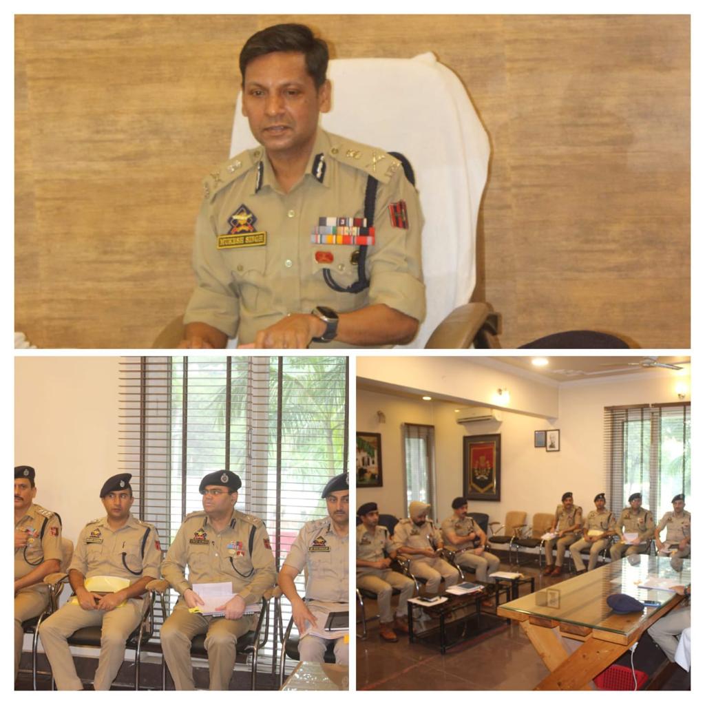 Jammu: The Additional Director General of Police (ADGP) Mukesh Singh conducted security and crime review meeting with supervisory officers of district Udhampur for heinous crimes and arrangements for Independence Day at DPO Udhampur. Stress was laid upon UAPA and NDPS cases especially for unearthing the forward and backward linkages in chain of drugs supply. He also directed the officers to conduct meticulous financial investigation in all NDPS cases. Investigation into cases of drug abuse and strategies to counter the drug menace was deliberated upon. During the meeting, Progress of investigation of UAP Act cases registered in district Udhampur was also discussed. ADGP Jammu also stressed upon quality investigation in the cases and proper follow up of case till conviction. He also reviewed the security arrangements for upcoming Independence Day function.
