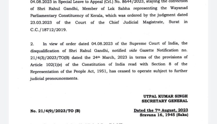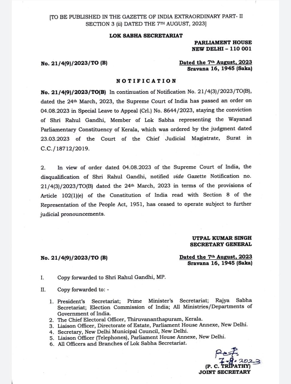 Rahul Gandhi back as MP representing Waynad. Nation By Editor Last updated Aug 7, 2023 212 Share 212 Share