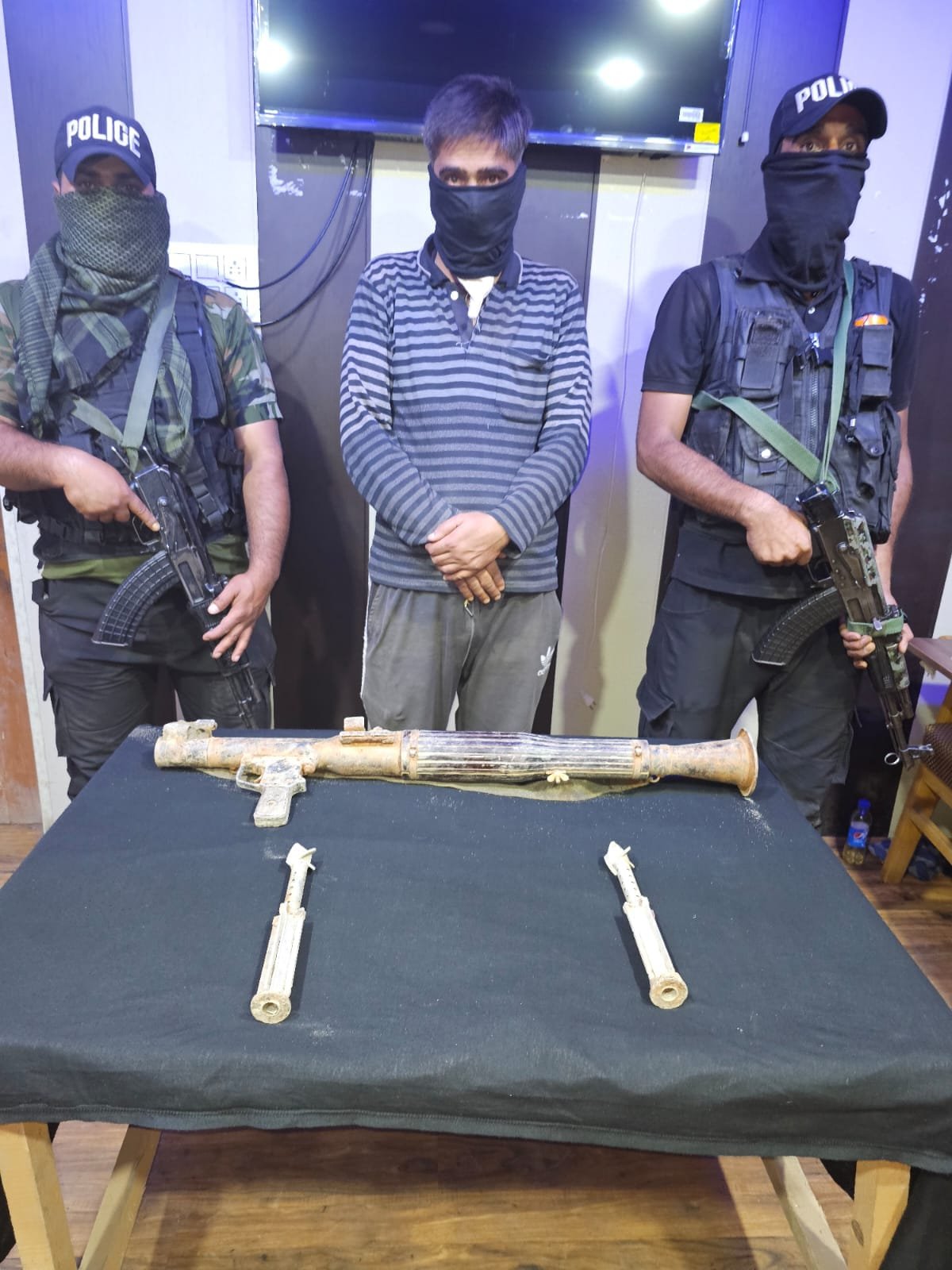 J&K | Shopian Police along with 44RR &14 Bn CRPF busted a terrorist module during a CASO at Naznenpora & arrested one LeT terrorist associate & recovered one 40mm Pak Origin RPG,01 RPG granade & 02 boosters. Case registered &investigation taken up: POLICE