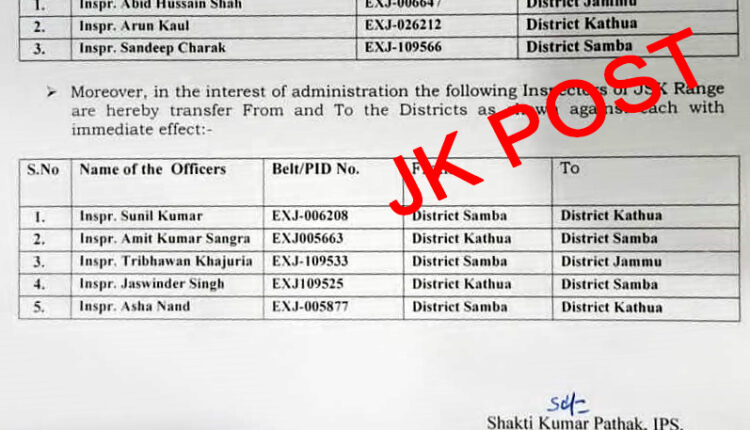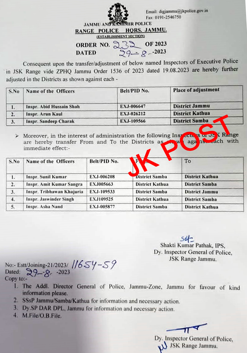 Jammu and Kashmir | Transfer and Posting in Police department. J&K / Ladakh By Editor Last updated Aug 29, 2023 846 Share 846 Share