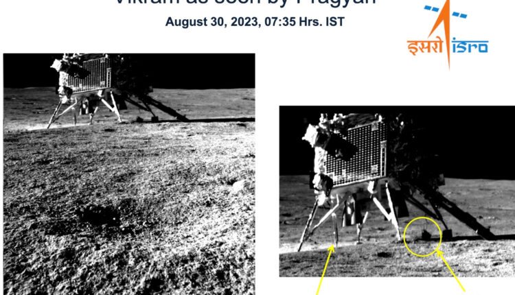 “Pragyan Rover clicked an image of Vikram Lander this morning. The image was taken by the Navigation Camera onboard the Rover (NavCam),” posts ISRO