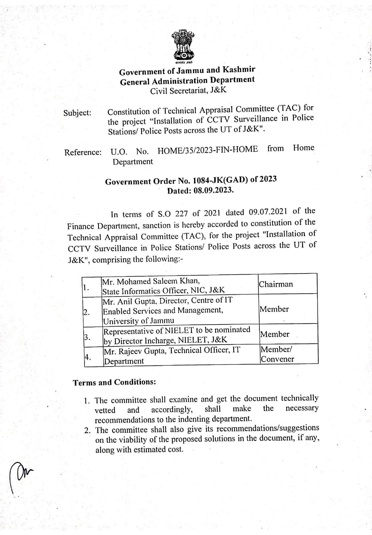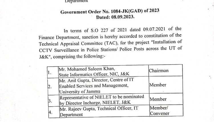 Jammu and Kashmir | Govt Constitutes Technical Appraisal Committee (TAC) For The Project Installation Of CCTV Surveillance In Police Stations/ Police Posts Across The UT J&K / Ladakh By Editor Last updated Sep 8, 2023 238 Share 238 Share