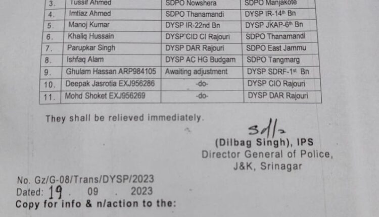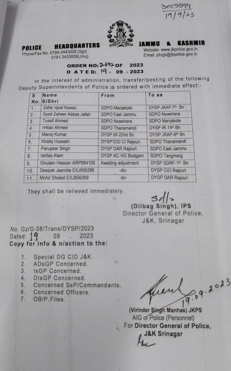 Jammu and Kashmir | Transfer and Posting in Police department. J&K / Ladakh By Editor Last updated Sep 19, 2023 409 Share 409 Share