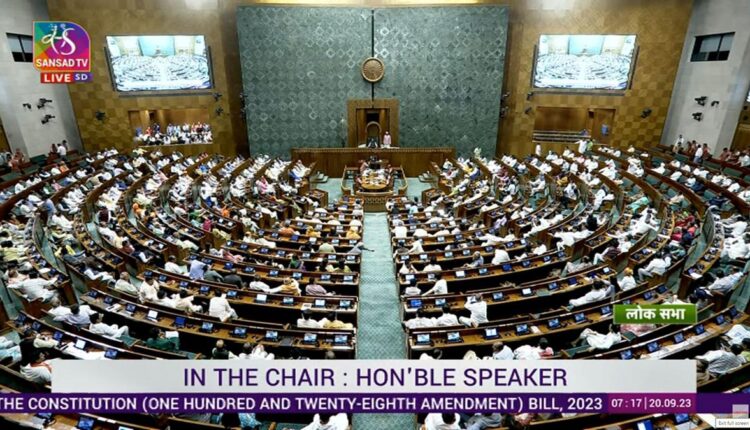 Lok Sabha passes Women’s Reservation Bill granting 33% seats to women in Lok Sabha and state legislative assemblies Nation By Editor Last updated Sep 20, 2023 78 Share 454 MPs vote in favour of the bill, 2 MPs vote against it 78 Share