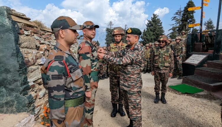 J&K | Northern Army Commander Lieutenant General Upendra Dwivedi visited frontline units along the Line of Control in Tangdhar and a Rashtriya Rifles formation in Anantnag to review Counter Infiltration Grid and operational preparedness. He was briefed on automation of Intelligence & Engagement Matrix. The Army Commander interacted with the troops and felicitated them for maintaining high standards of operational preparedness in active CI Operations: Indian Army