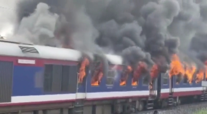 Maharashtra | Five coaches of an 8-coach DEMU train caught fire at 3 pm between Ahmednagar and Narayanpur stations. No injuries or death reported as all passengers debaorded the train when it caught fire. No person is trapped inside the burning coaches. Firefighters are called by railway authorities: CPRO Central Railways